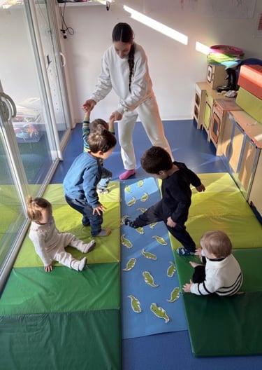 La baby gym permet aux tout-petits d’explorer leurs capacités motrices dans un environnement sécurisé, bienveillant et stimulant.